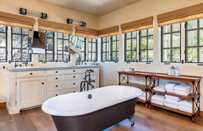 Актер, продюсер, режиссер и сценарист Мэл Гибсон выставил на продажу свое поместье в Малибу, штат Калифорния, за 14,5 млн долларов. Резиденция 600 кв. метров, построенная в середине 1990-х годов, включает в себя пять спален, пять ванных комнат, а также гостевой дом и домик у бассейна с фитнес-оборудованием. Уединенный двухэтажный особняк стоит на холме, добраться до него можно по закрытой подъездной дороге. Просторный холл ведет в объединенную с кухней гостиную с открытыми деревянными балками и каменными арками. Многие стены в интерьере отделаны фактурным камнем, который вместе с полами из темного дерева создает «рустикальный» образ. Натуральные материалы активно использованы в отделке кухни: традиционные деревянные фасады дополнены мраморными столешницами. Из многих окон, например, в спальнях и столовой, открывается вид на океан. Окна в пол на первом этаже стирают границы между домашним пространством и окружающей территорией. На участке достаточно мест для отдыха на свежем воздухе — патио с фонтаном, затененная терраса, зона для барбекю, два бассейна, спа. Мэл Гибсон приобрел поместье в 2008 году за 11,5 млн долл. у актера Дэвида Духовны и его бывшей супруги Теа Леони. Впервые он выставил особняк на продажу еще в июле 2017 года за 17,5 млн долл. В июне 2018 года поместье предлагалось уже за 16,5 млн долл.