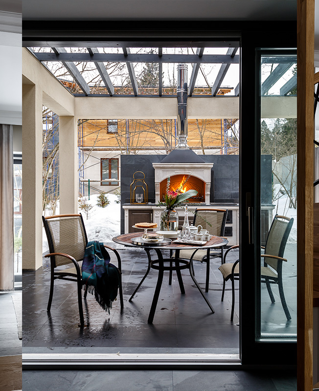 В проекте я принимала участие с нуля. Вместе с архитектором работала над планировкой, с момента закладки фундамента до расстановки аксессуаров проводила авторский надзор.Полное доверие инвестора оправдало себя. Основная идея проекта — загородный дом для жизни с комфортом. Важно то, что внутри, а не то, что снаружи. Площадь вместе с террасами составляет 630 кв. метров, теплого контура — 530 кв. метров.
