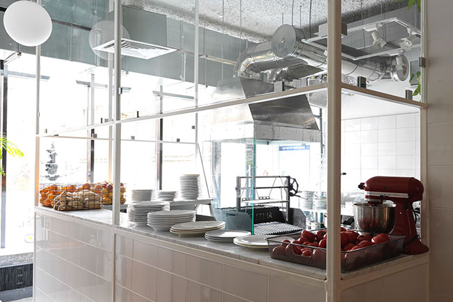Заведение включает две функциональные зоны: открытую кухню и основной зал. Летом пространство увеличивается вдвое за счет уютного внутреннего дворика с открытой террасой.