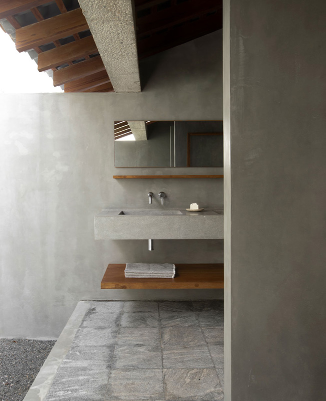 Высокие ставни расположены вдоль всего периметра здания — сквозь них можно пройти на открытую веранду. Ставни сделаны из дерева, чтобы избежать застекленных проемов. Щедрые крыши закрывают внутренние и наружные пространства от дождя и солнца, что позволяет создать особое ощущение защищенности и комфорта на природе.