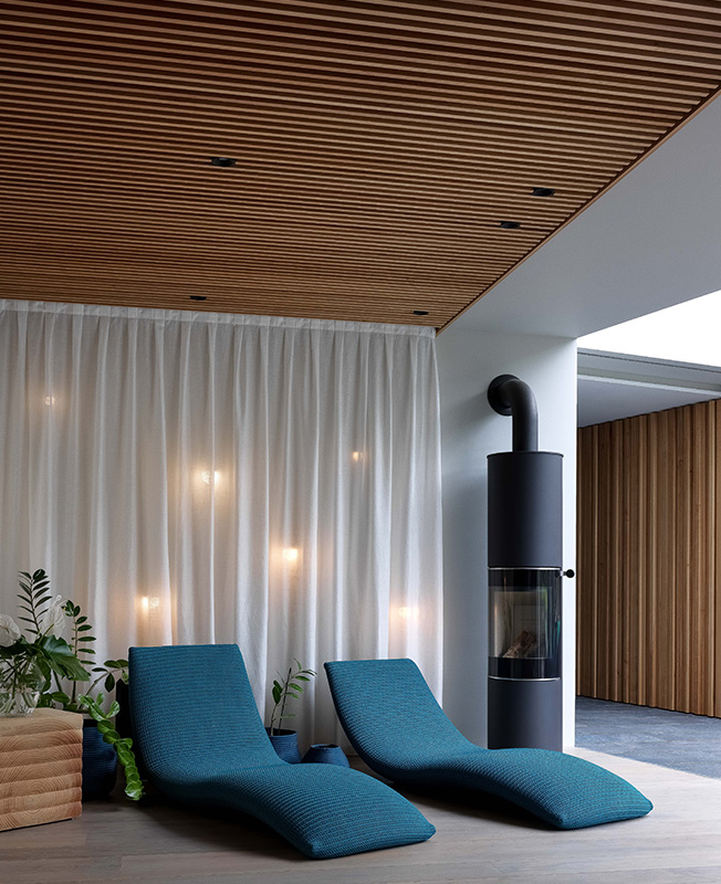 Зона спа. Занавес с подсветкой — разработка архитекторов, создает расслабляющую атмосферу. Лежаки Paola Lenti.