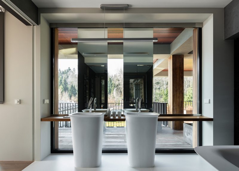 Ванная при главной спальне. Раковины Antoniolupi, cмесители AXOR Hansgrohe, коллекция Starck Organic.