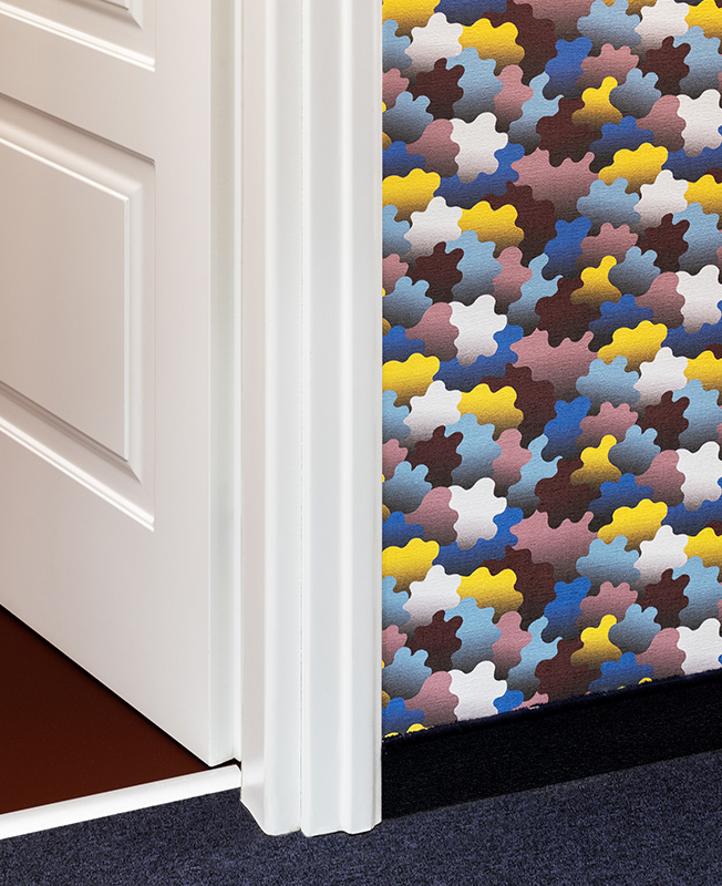 Studio Proba подарила «комнате отдыха» современный облик. «Сначала я задала себе вопрос, что означает комната отдыха для сотрудников и почему так часто эти комнаты остаются заурядными помещениями. Мы сосредоточились на создании пространства, которое развлекает и, возможно, даже смущает вас, как только вы входите. Оно заполнено декором. Плоские формы оживают и словно вырастают из стен, приглашая сделать небольшой творческий перерыв, который нужен в течение напряженного рабочего дня».