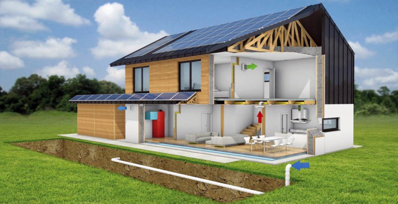 Полностью автономный загородный дом является не только «пассивным», «умным», но и экологически чистым, использует только возобновляемые источники энергии, максимально экономичен в расходовании всех ресурсов.