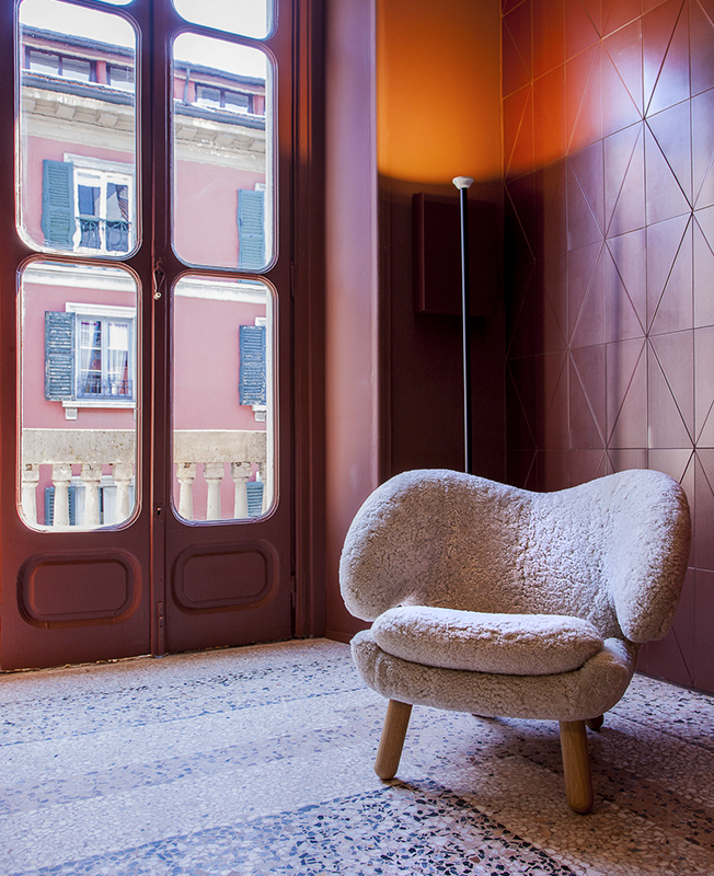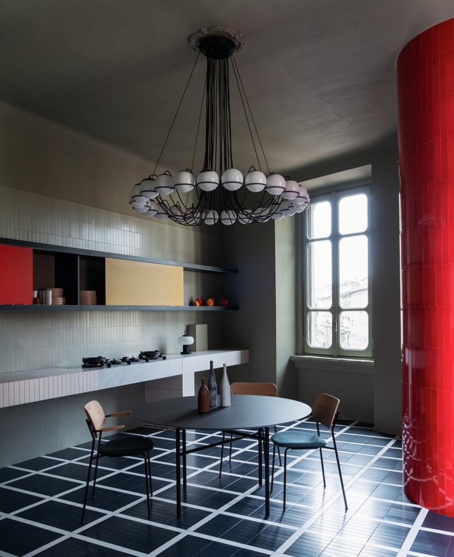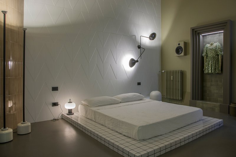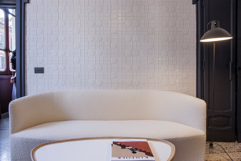 «Эта квартира стала витриной нашего нового бренда H+O, коллекции керамики, которая демонстрирует иную концепцию использования этого материла в жилом пространстве. Цель — придать плитке архитектурную ценность и графическую выразительность, «вывести» ее из кухни и ванной комнаты, где ее обычно применяют, и сделать архитектурным элементом для всех комнат в доме», — комментирует Элиза Оссино.