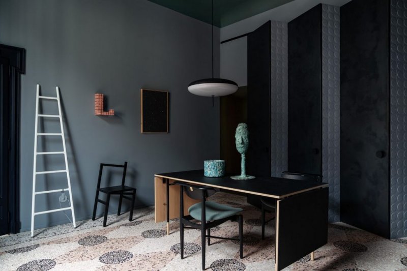 Элиза Оссино и Жозефина Аквама Хоффмейер, креативные директора и основатели студии H O, совместно с галерей Officine Saffi создали сценографию для пяти комнат в рамках Миланской недели дизайна 2019. Элиза Оссино — востребованный итальянский дизайнер. Жозефина Аквама Хоффмейер — владелица датского бренда File Under Pop, который специализируется на отделочных материалах ручной работы: настенных, напольных и потолочных покрытиях из глины или лавы Суть их проекта Perfect Darkness — микс итальянского и датского дизайна. Для оформления pop-up квартиры с гостиной, спальней, кухней, столовой и ванной комнатой использовали предметы 11 датских и итальянских брендов: Artcoustic, Astep, DE-Tech, File Under Pop, Frama, H O, House Of Finn Juhl, Menu, Officine Saffi, Stine Goya, Tubes. Авторы многих объектов — керамисты из разных стран: Миа Йоранссон, Михал Фарго, Сангву Ким, Мортен Лёбнер Эсперсен, Казухито Нагасава, Йоханнес Нагель, Андерс Хервальд Рувальд, Джон Ши, Жолт Йожеф Шимон, Кайя Упель. В их числе есть и российский автор — Ирина Разумовская. Керамика — главная героиня Perfect Darkness. По мнению авторов проекта, глина на стенах сегодня в тренде — но не банальная плитка, а сложные фактурные покрытия. После многих лет работы с плиткой большого формата и минимальной толщины дизайнеры вернулись к миниатюрной плитке, тщательно обработанной, со сложными узорами. «Эта квартира стала витриной нашего нового бренда H O, коллекции керамики, которая демонстрирует иную концепцию использования этого материла в жилом пространстве. Цель — придать плитке архитектурную ценность и графическую выразительность, «вывести» ее из кухни и ванной комнаты, где ее обычно применяют, и сделать архитектурным элементом для всех комнат в доме», — комментирует Элиза Оссино. Узорная, зачастую трехмерная керамическая отделка в квартире становится не просто декоративной деталью, но настоящим структурным элементом, подобно колоннам у входа или каминному порталу. Эффект усиливает выразительная палитра. «Мне нравится работать с контрастами, — говорит Элиза Оссино. — Цветовая гамма включает очень темные, непрозрачные тона: зеленый, теплый коричневый, темно-синий, а также акценты красного цвета. Они чередуются с очень чистыми светлыми пространствами».