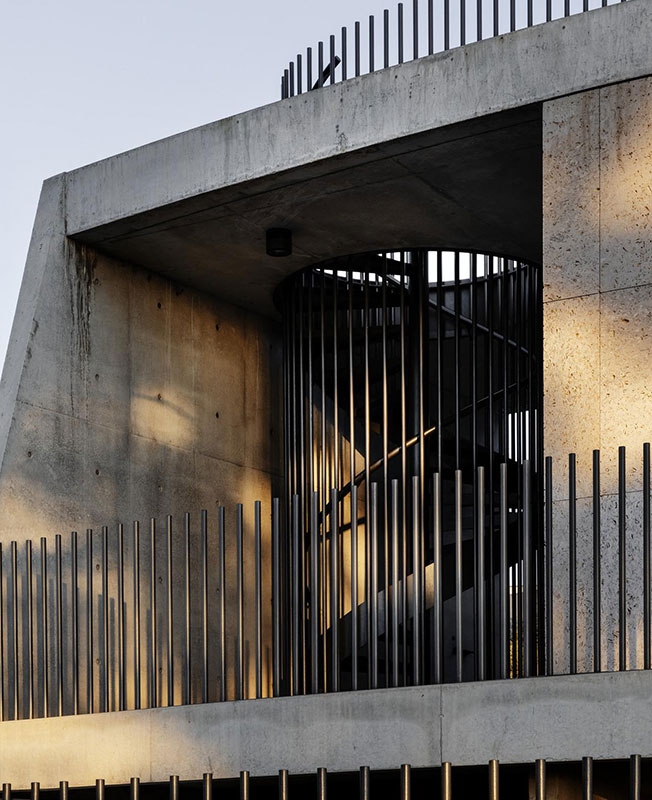 Просчитанная форма обеспечивает тень от заходящего на западе солнца, и открывает океан, чтобы впустить восход. Интерьеры позволяют жителям чувствовать воздействие местоположения. На самом верхнем уровне находятся крыло главной спальни и гостиная, которые отделены деревянной и каменной лестницей.