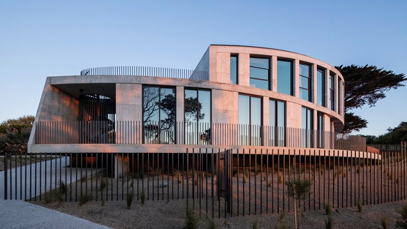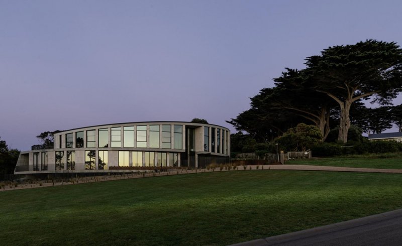Архитектор Ник Каралис, Woods Bagot спроектировал дом на австралийском побережье. Tidal Arc House стоит на откосе, на полуострове Морнингтон, в небольшом городке к юго-востоку от Мельбурна, с населением около 900 человек.