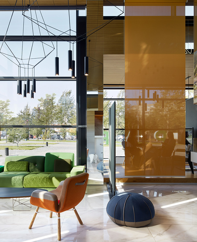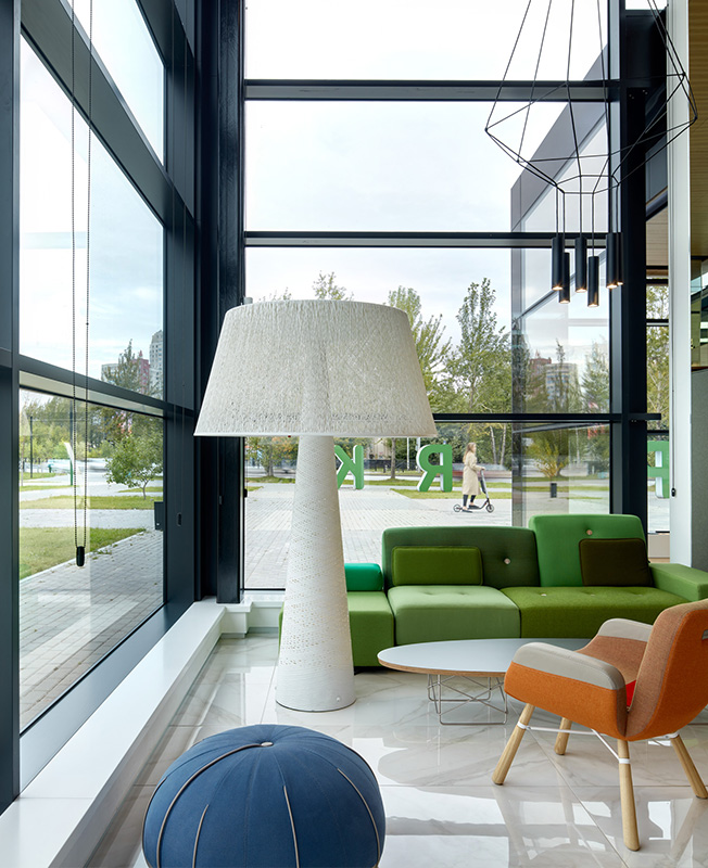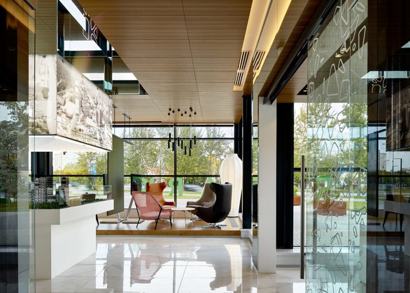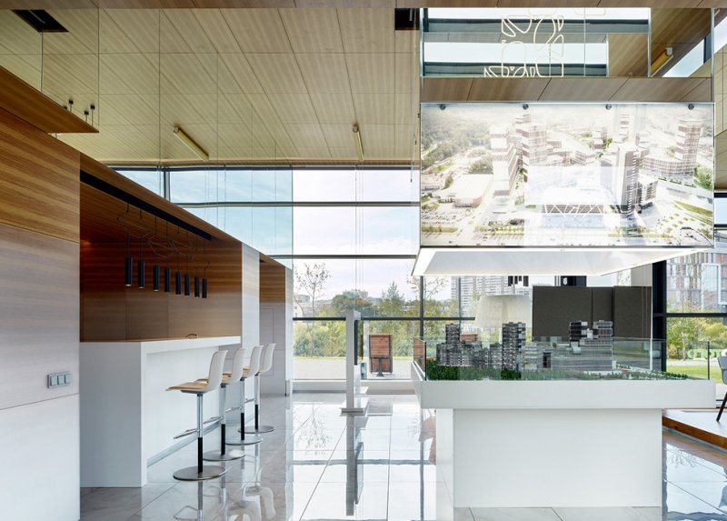 Офис продаж выполняет сразу несколько функций: это и место встречи с потенциальными жителями квартала, и рабочее помещение, и место рекреации. Поэтому главной задачей для архитекторов стало правильное зонирование.