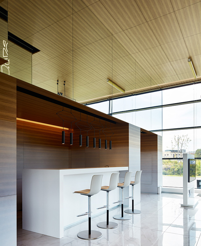 Помещение представляет собой открытое пространство, визуально разделенное на несколько зон: рабочие места, бар, зоны для переговоров и встреч. Благодаря мобильным перегородкам и мебели пространство может трансформироваться под любую задачу. Общая площадь: 120 кв. метров. Проектировщики Vox Architects придирчиво подошли к выбору оснащения: использовали мебель бренда Vitra, cветильники Vibia, сантехнику Laufen.