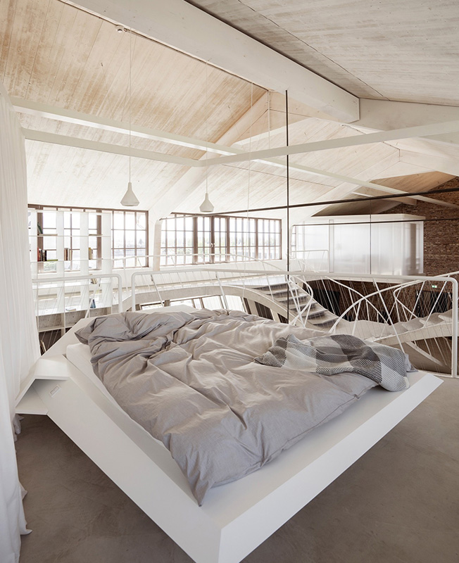 Проект Smartvoll Architects в историческом районе Зальцбурга Панцерхалле мог бы предназначаться Джеймсу Бонду. Бывший чердак превращен в двухуровневое пространство с величественной широкой Т-образной лестницей, открытой спальней, камином и душем на балконе за прозрачной стеной. Проект был удостоен нескольких дизайнерских премий.