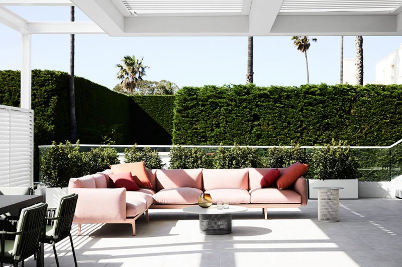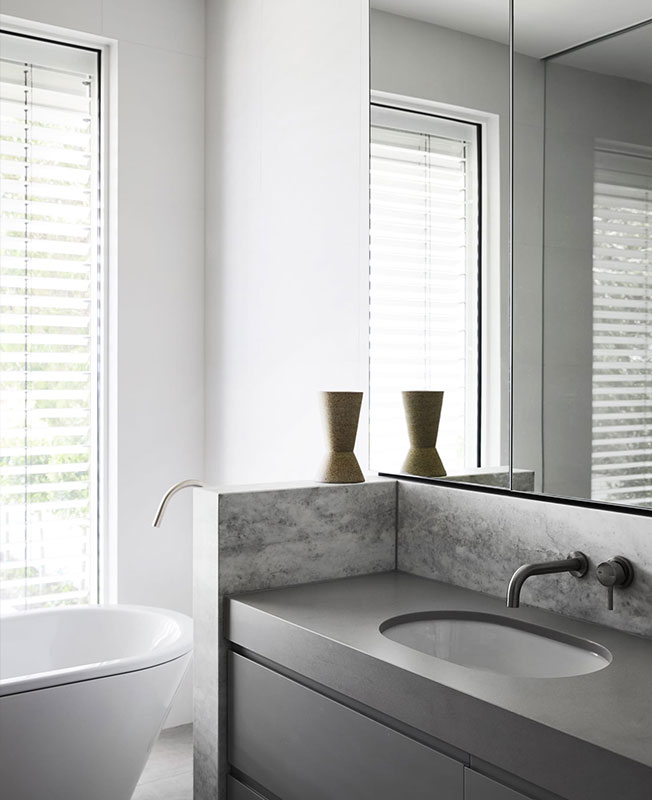 Дизайнеры Golden подарили ощущение роскошного спокойствия дому с панорамным видом на залив Порт-Филлип, построенному в конце XX века. Продуманная палитра цветов и текстур берет свое начало в прибрежном пейзаже, создавая непринужденную атмосферу семейного уюта. Трехэтажная недвижимость в пригороде австралийского Мельбурна с четырьмя спальнями и пятью ванными комнатами украшена лестницей с белыми перилами — ее баллюстрада служит объединяющим элементом дома, побуждающим наслаждаться видами его интерьера. Прихожая залита естественным светом. Фактурные бетонные стены подчеркивают изогнутую форму лестницы. А тонкая металлическая отделка компенсирует богатую патину и рисунок натуральных материалов, таких как камень и дерево. Участки из серого мрамора в жилых комнатах, на кухне и в ванных добавляют великолепия и вдумчивой прочности образу. Борясь с огромными размерами дома, дизайнеры Golden сделали акцент на различных настроениях, используя тональные контрасты для разграничения зон. В одном из жилых помещений темные деревянные панели скрывают телевизор, чтобы сохранить единый вид стены. В другой гостиной можно заметить светлую древесину и мансардные окна — воздушную альтернативу более темным комнатам. Полы, отделанные плиткой, создают синергию между открытой террасой и основными внутренними комнатами. Весь дом — одно большое упражнение в роскоши. Высококачественная мебель большого размера соответствует высоким потолкам. Для гостиной был выбран большой диван дизайна Пьеро Лиссони от Living Divani, четырехметровый обеденный стол был сделан на заказ. Светильники Flos в спальнях подсвечивают фактурное постельное белье, создавая мягкость, которая уравновешивает огромное пространство.
