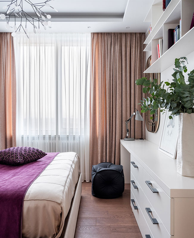 «Владельцы квартиры интеллигентная и дружная семья, привыкли собираться на завтрак за большим столом и проводить вечера вместе. При этом каждому из детей необходимо было полноценное пространство для уединения, работы и отдыха. Это и стало основным пожеланием при создании интерьера», — рассказывает о проекте Екатерина.
