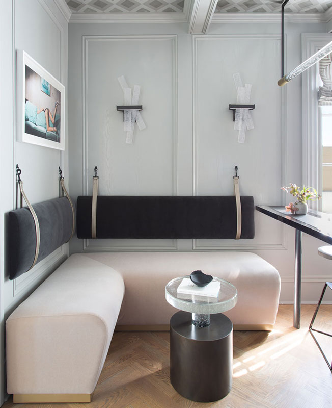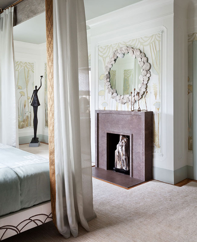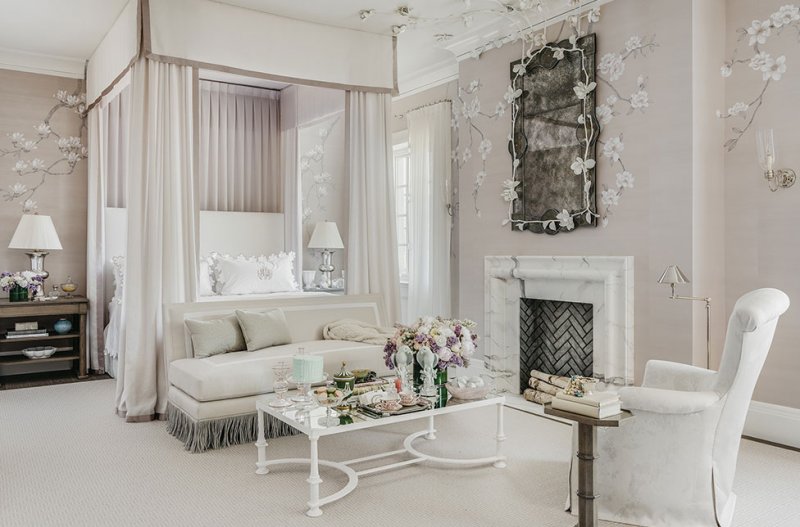 Дина Бандман представила спальню Magnolia Canopy в мягкой палитре серых и лиловых оттенков, вместе с обоями на переливающейся металлической шелковой основе. Спускаясь по стенам, мягкие цветы магнолии окружают элегантную кровать с балдахином. Обои сочетаются с прохладным мрамором, серебряными аксессуарами и бледной мебелью, создавая женственную интерпретацию весны.