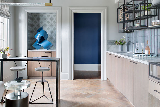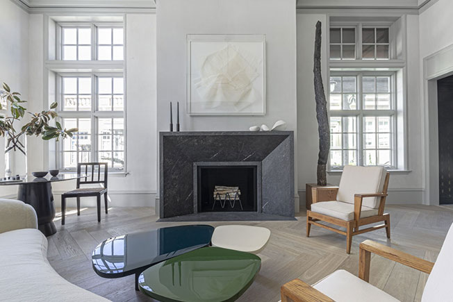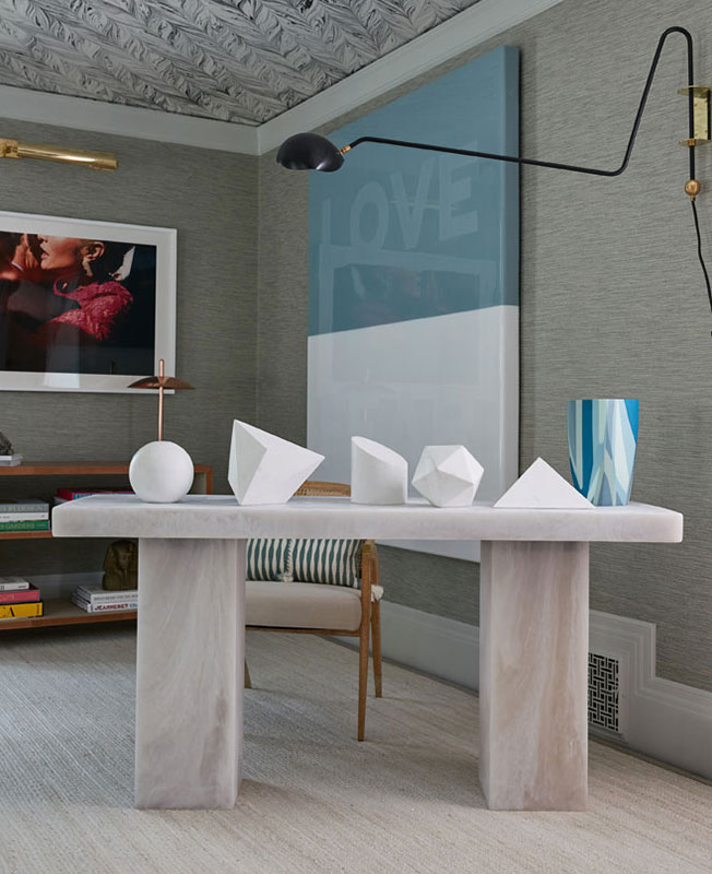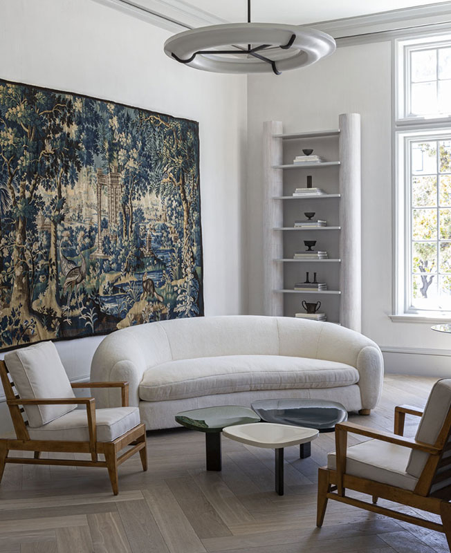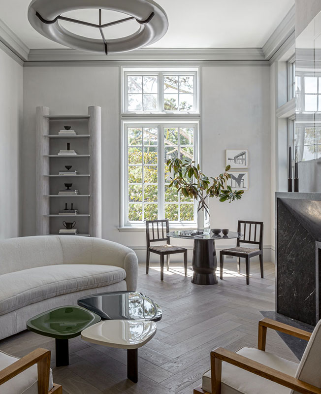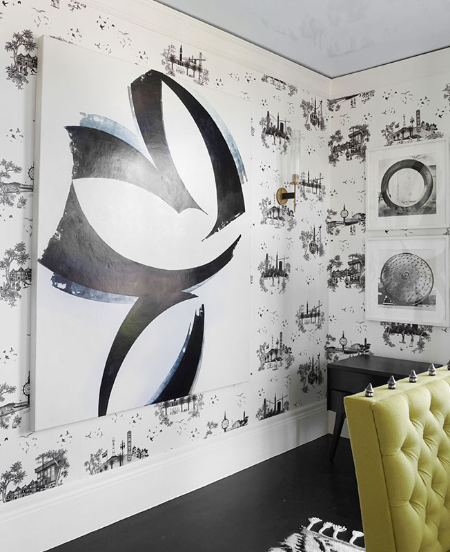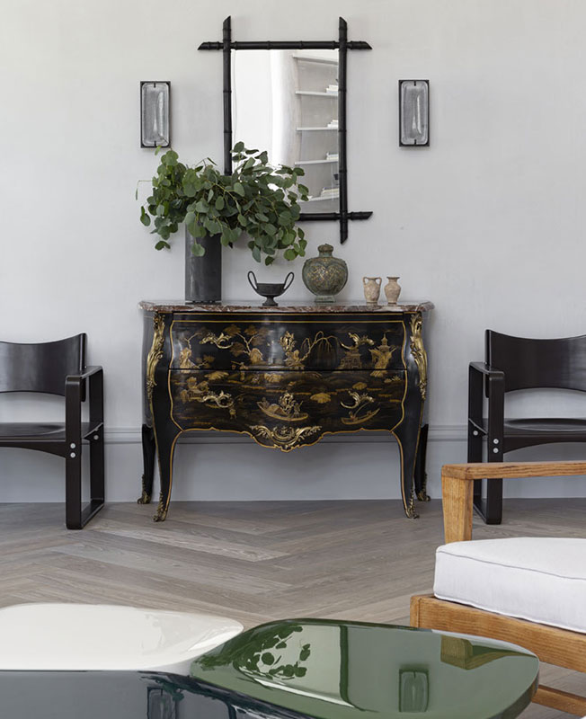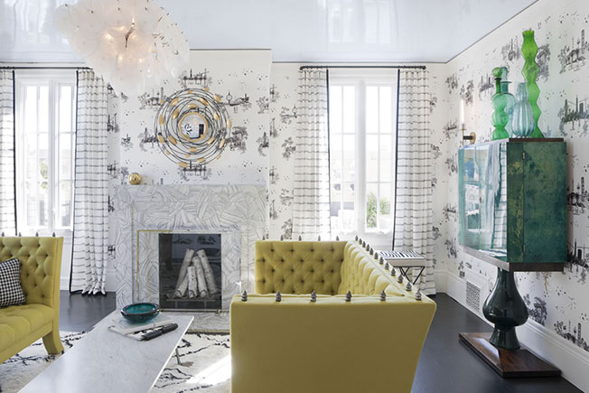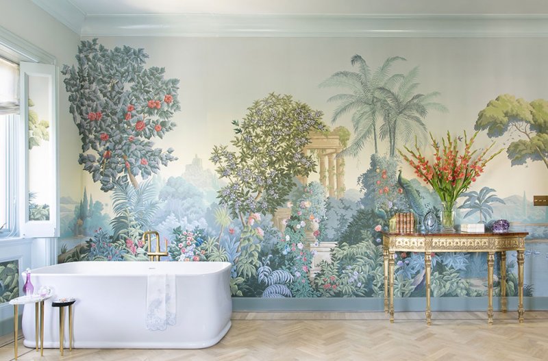 Джонатан Рахман использовал мотив Houghton из коллекции шинуазри от de Gournay, представленный в 2018 году. Он ссылается на оригинальный экземпляр XVIII-го века из «Кабинета министров», который находится в самом красивом из исторических английских домов — Хоутон-холле в Норфолке. Не подверженные воздействию света и воздуха, эти панели сохранили удивительные яркие цвета. Энергичный пейзаж сочетается с богатым набором мебели и аксессуаров в стиле английского загородного интерьера.
