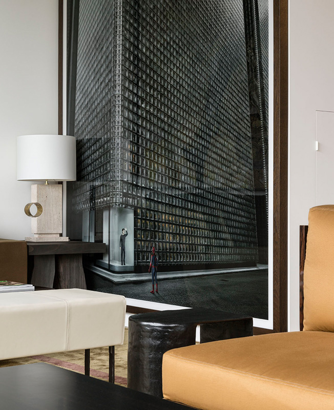 Гостиная. Крупноформатная фотография слева — работа Андреаса Гурски. Справа скульптура минималиста Дональда Джадда. Вся мебель — дизайна Валери Ростен.