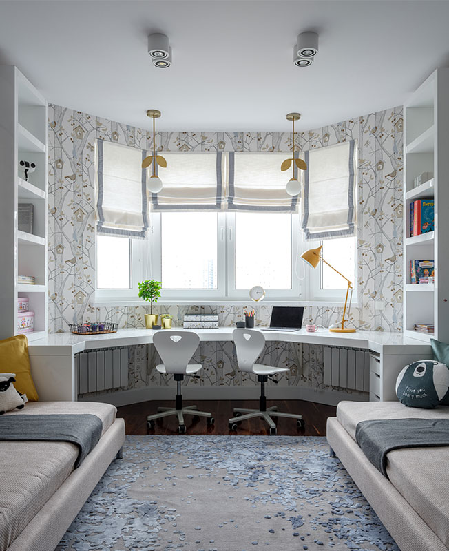 Корпусная мебель выполнена на заказ по эскизам дизайнеров, Мастерская Андреева & Гардари. Светильники, L’Appartement. Текстиль, Happy Collections.