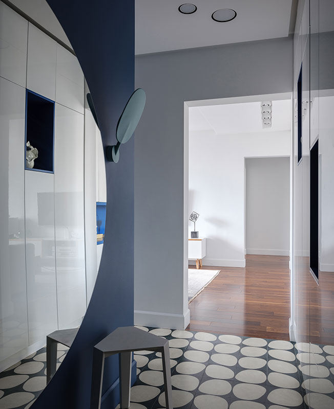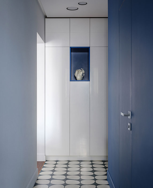 «Владелец увидел в интернете один из наших проектов — интерьер в синих тонах, и обратился к нам за дизайном квартиры в новостройке. Заказчики хотели светлое, современное, функциональное пространство, а концепция строилась вокруг насыщенного синего цвета.