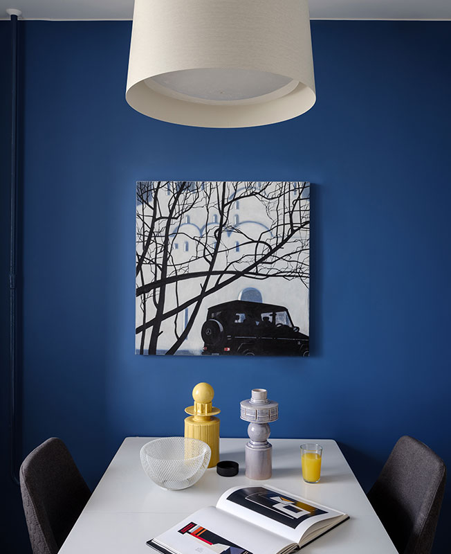 Обеденный стол, стулья, La Forma. Декор, L’Appartement. Картина, Федор Петрик. Светильник, Foscarini.