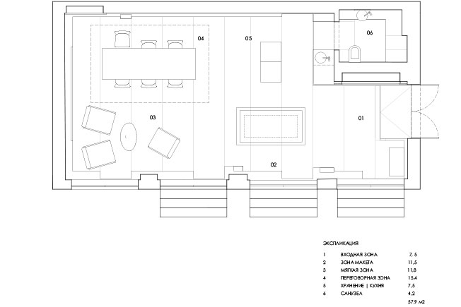 Необходимо было создать не типичный офис продаж, но запоминающееся пространство, приспособленное для различных мероприятий — не только для встреч с клиентами. Концепция интерьера подчеркивает идею самого проекта Ordynka, где исторические строения XVIII-XIX веков гармонично сочетаются с архитектурой XXI века.