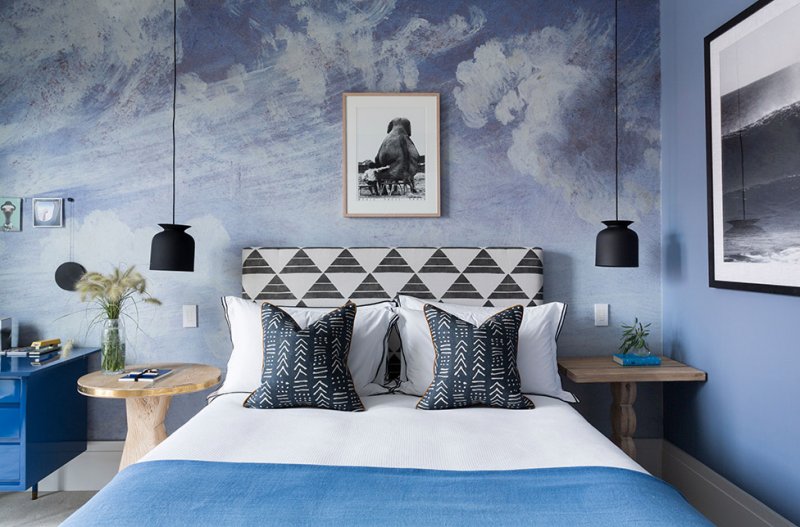 В задней части квартиры находятся три спальни, которые разделены дополнительной гардеробной, за которой находится ванная комната. В комнате для подростка по серо-голубому небу вздымаются перистые облака. Это увеличенная копия фрагмента живописного полотна Джона Констэбля Cloud Study 1822 года.