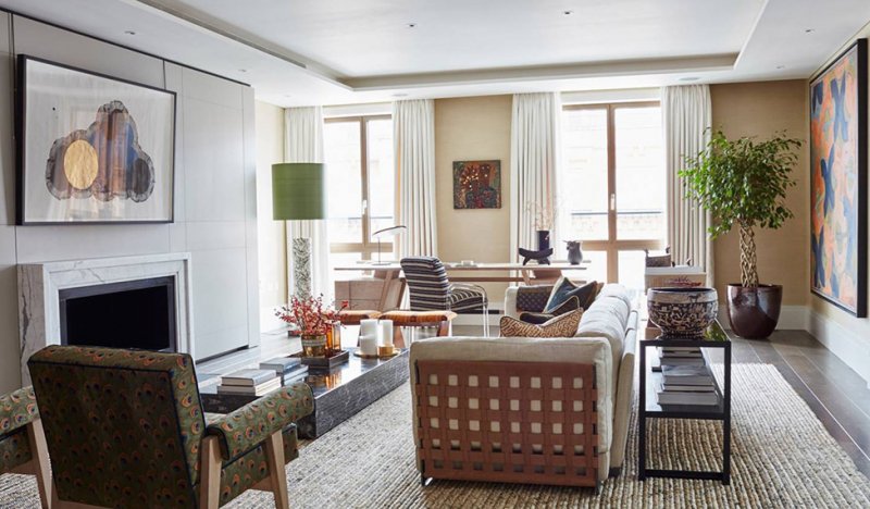 Одно из достижений в портфолио Studio Ashby — просторная квартира на втором этаже в новостройке Челси площадью 351 кв. метр для коиентов из Москвы. Комнаты были соразмерны. Софи выбрала мебель землистых оттенков с акцентом на текстуру и рисунок.