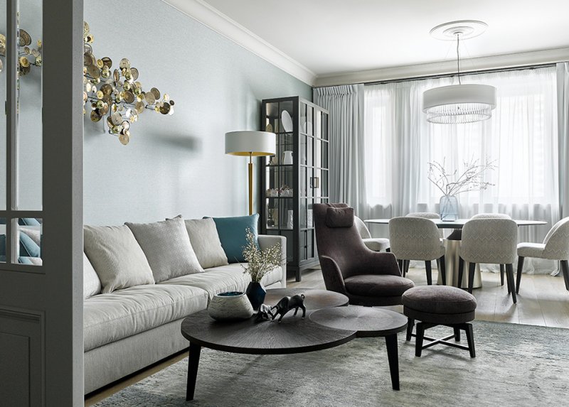 «Этот проект мы сделали для молодой пары с двумя детьми, они любят путешествовать, интересуются искусством. Семья приобрела жилье в новостройке на Ленинском проспекте — выбор дома определил тот факт, что неподалеку находится школа, в которую ходят дети.