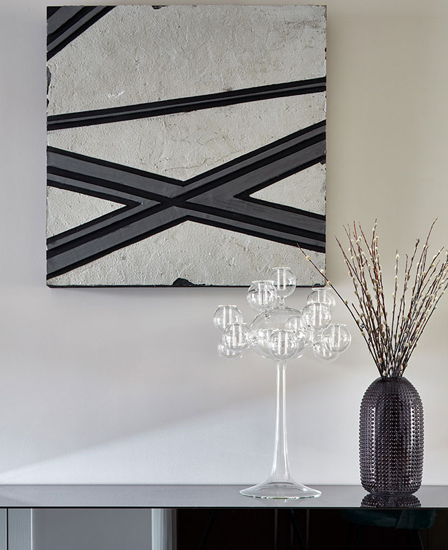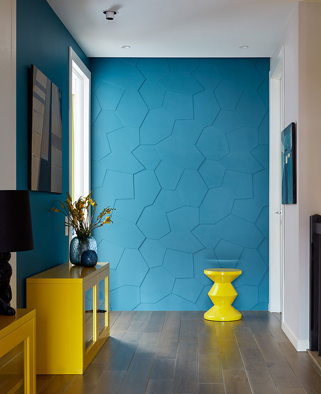 Холл второго этажа. Гипсовые панели, А Decor. Табурет, салон «Урбаника». Книжные тумбы выполнены на заказ по эскизам дизайнеров. Картины, галерея ART brut.