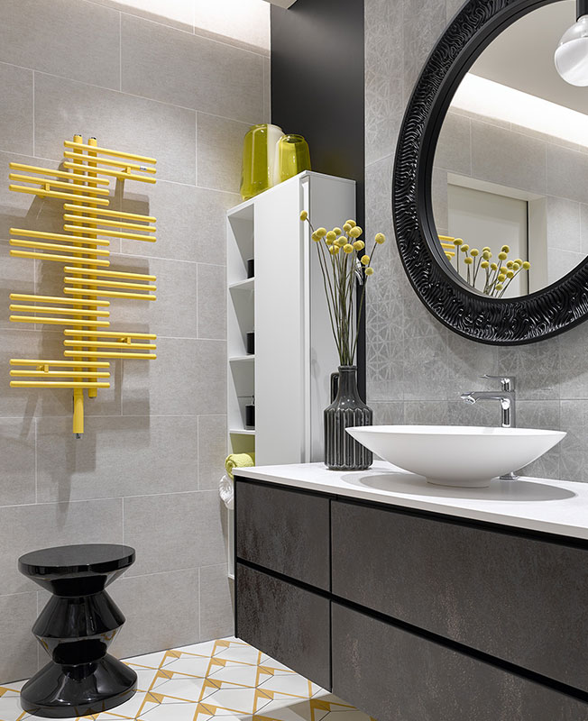 Детская ванная комната. Зеркало выполнено на заказ по эскизам дизайнеров.Подвесной шкаф, Arbi.