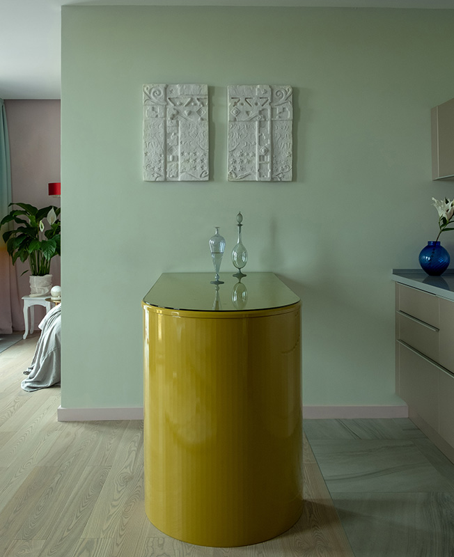 Взяться за столь необычный объект Павла Воловова побудили две причины. Во-первых, заказчица — его давняя хорошая знакомая. Во-вторых, дизайнером двигал профессиональный азарт. Павел извлек максимум возможного из предложенных условий.