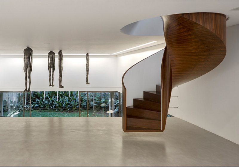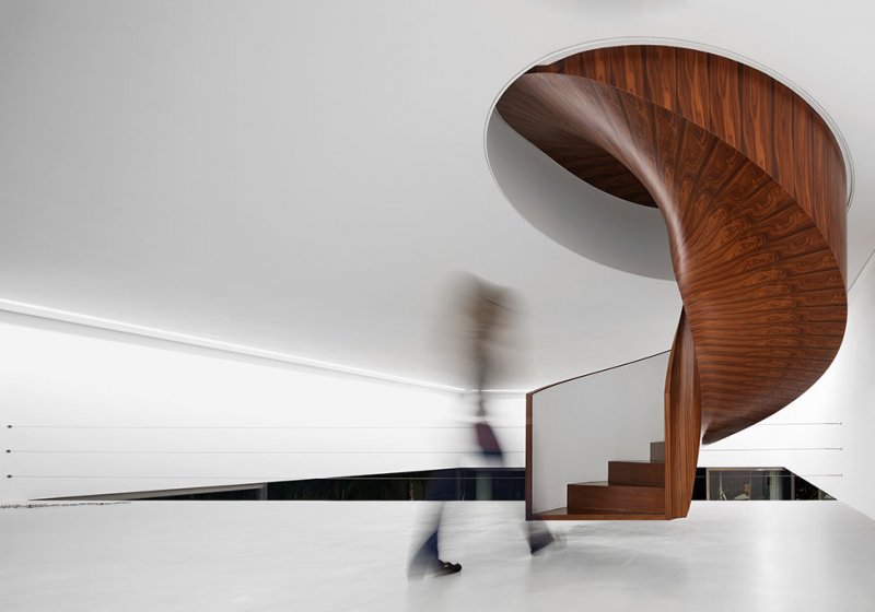 Винтовая лестница в Casa Cubo выполнена из железного дерева.