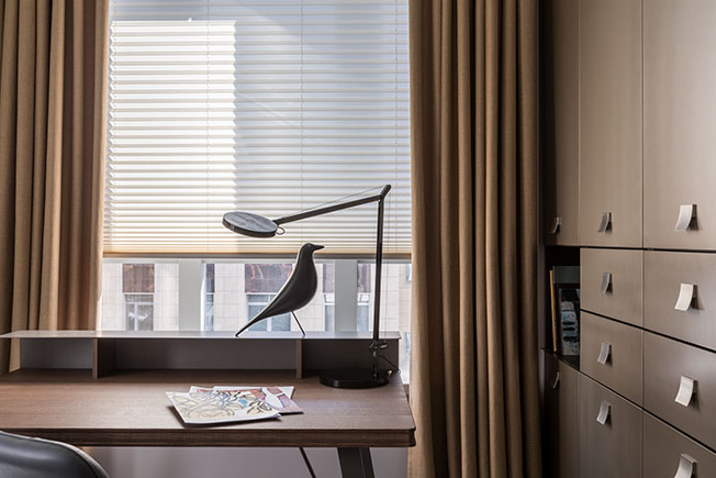 «Также интересно отметить, что съемка кабинета чуть не сорвалась. Когда накануне мы приехали на объект, оказалось, что часть фасадов встроенного шкафа исчезла! Выяснилось, что мастерская, выполнявшая заказ, обнаружила небольшой дефект в покраске и забрала фасады, чтобы довести их до совершенства. Ситуацию подрядчикам мы объяснили, и меньше чем через сутки все было на своем месте. И при этом — без единого дефекта!».