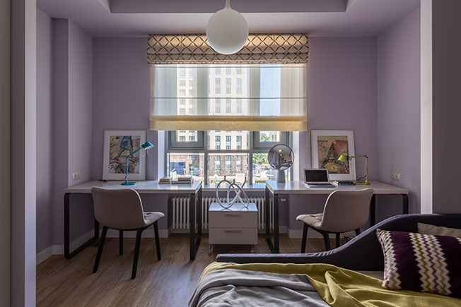 Также в квартире сформировали спальню, детскую комнату для двух девочек-подростков, отдельный кабинет на месте второй утепленной лоджии, гостевой санузел, ванную комнату, а также много мест для хранения – встроенные шкафы (в том числе серверный) и гардеробные.
