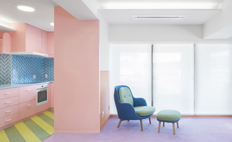 Когда лондонского дизайнера Адама Натаниэля Фурмана (Adam Nathaniel Furman) клиент попросил сделать квартиру в «цветах жвачки», Адам понял, что создаст захватывающий проект. Расположенная в самом центре Нагатачо, административного района в центре Токио, квартира сочетает молочные, пастельные тона и желтые акценты, которые выглядят как единый коллаж. Художественный, запоминающийся, постмодернистский.