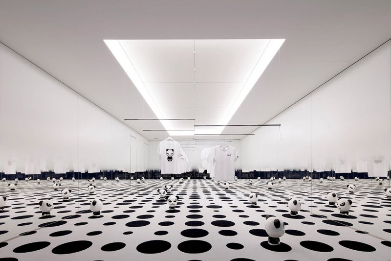 Расположенный в районе Омотэсандо новый бутик — первый представитель китайского streetwear-бренда в Японии. За основу проектировщики взяли логотип марки, на котором изображен сердитый панда, получивший прозвище «анти-Hello Kitty».