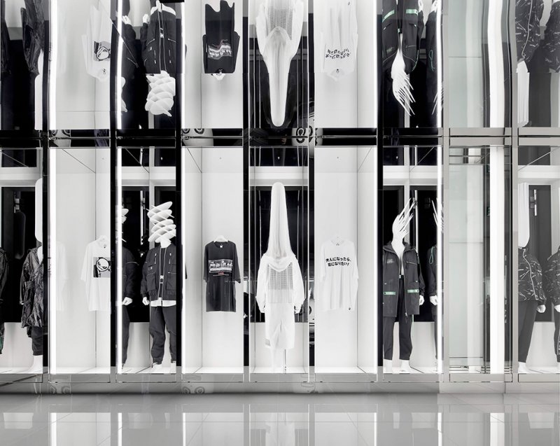 Дизайнер Гвенаэль Николя и его студия Curiosity оформили интерьер флагманского магазина Hipanda в Токио. Одним из основных элементов пространства стала дополненная реальность. Расположенный в районе Омотэсандо новый бутик — первый представитель китайского streetwear-бренда в Японии. За основу проектировщики взяли логотип марки, на котором изображен сердитый панда, получивший прозвище «анти-Hello Kitty». Спроектированное Curiosity пространство выполнено в черно-белых цветах, как мех панды, и представляет собой зеркальный лабиринт в духе работ Яёи Кусамы. Перемещаться по нему посетителям предлагают в поисках невидимого проводника — «призрака». Стоит навести на интерьер камеру смартфона, как он оживает — с помощью цифровых и аналоговых взаимодействий: дополненной реальности и различных световых сценариев. Одежда начинает поворачиваться в такт невидимых шагов, пространство наполняют висящие в воздухе сферы, а сам панда-маскот появляется перед посетителем. «Нас попросили перенести уличную моду на новую территорию, ломая границы вне пределов культуры, возраста и гендера, в эмпирическое пространство, доступное и вдохновляющее для всех, — говорит основатель Curiosity Гвенаэль Николя. — Вот почему новый опыт розничной торговли объединяет миры искусства, моды, технологий и архитектуры… или вы можете просто назвать это эмоциями, страстью, любопытством и красотой».