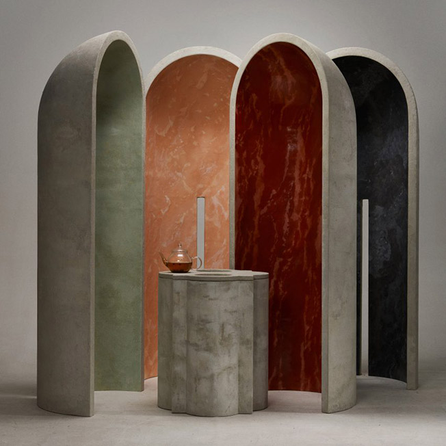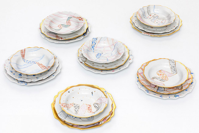 Английский иллюстратор Кэти Скотт сотрудничала с J & L Lobmeyr, чтобы исследовать идеи отравления обедом. На стеклах бокалов выгравированы изображения ядовитых растений и противоядий. Стаут работала с фарфоровым брендом Augarten. В течение двух недель дизайнер рисовала, смешивая классические мотивы с ироничными современными образами. Бельгийский дизайнер Нел Вербеке создал новую архитектуру для чайной церемонии с четырьмя мраморными нишами, которые являются «своего рода алтарем» для приготовления чая.