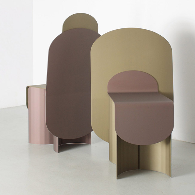 Голланская студия OS & OOS спроектировала два металлических стула с высокими спинками «для архетипических хозяев стола», один из которых представляет мужчину, а другой — женщину. Они были произведены DiSe, молодым итальянским производителем, который специализируется на производстве мебели на заказ.