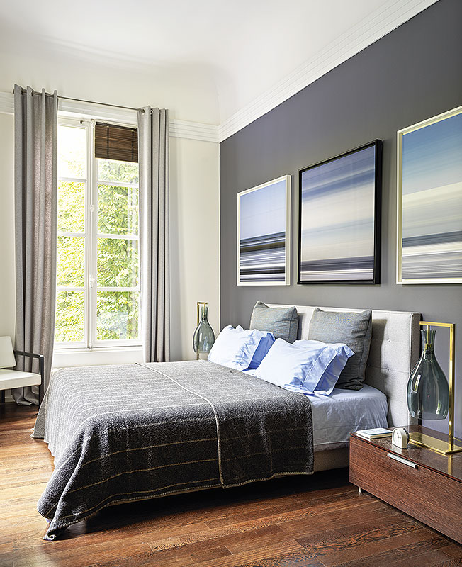 Квартира дизайнера Дидье Гомеза. Спальня. На стене в изголовье три фотографии Ф. Мюллера.