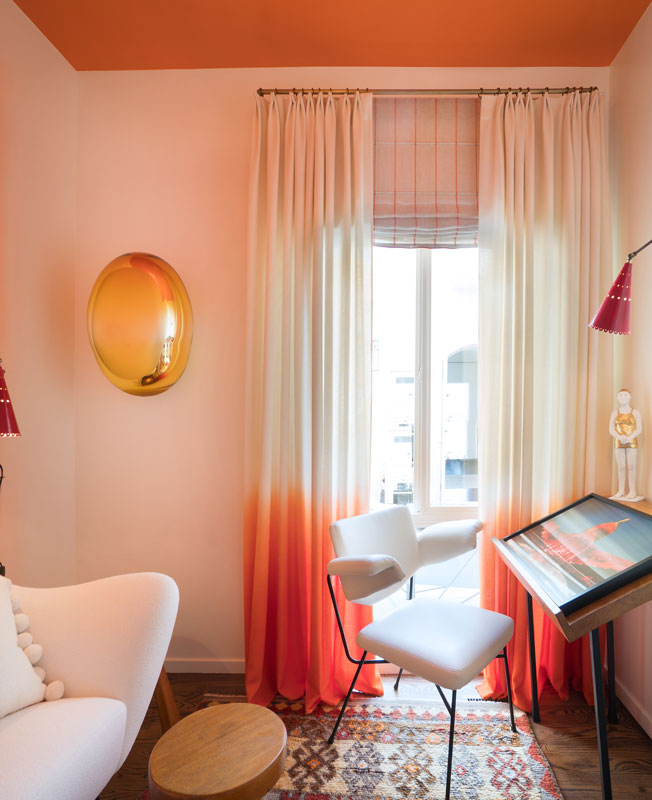Летний дом в США, оформленный архитекторами бюро Workshop/APD. Палитра проекта изобретательна: не только голубой, но и темно-синий, есть цвет морской волны и бирюза, причем в некоторых местах архитекторы использовали популярный сегодня принцип градиента с постепенным уходом цветного пигмента. Виллем Рэкке, Willem Racke Studio — специалист по декору и самым разнообразным отделкам — фрескам, ручным росписям, буазери и особым штукатуркам. В дуэте с Сюзан Честейн, владелицей мебельной компании Susan Lind Chastain, он оформил небольшую гостиную-кабинет для выставки San Francisco Decorator Showcase 2018. Рэкке вдохновлялся работами художников 1960-х. Проект Майкла Чена, студия MKCA, — таунхаус на Манхэттене — идеальный пример «умного дома»: в нем все подчинено идеям комфортной жизни для одной семьи. В одной из спален на стене изготовленное на заказ покрытие Сalico с градиентом, декор называется Aurora. Эту парижскую квартиру в районе Трокадеро реконструировал великолепный французский дизайнер Родольф Парант. Кабинет примыкает к гостиной. Калифорнийское архитектурное бюро FreelandBuck завершило жилой проект Second House в Калвер-Сити, Лос-Анджелес. Дом представляет собой сложную совокупность объемов, напоминающую конструктор из призм. Внутренняя лестница окрашена в ярко-красный и оранжевый цвета, которые отсвечивают и придают оттенки спальням и жилым помещениям в зависимости от интенсивности света и времени суток. Дизайнер Матье Леаннер создал в рамках AD Interieurs 2018 гостиную для размышлений, погрузив свой ум в знаки и символы тайных обществ. Образец модной эклектики создал в Париже Антуан Симонан, Studio Asai. У окна в спальне — ширма Kin из бумаги васи, Garnier