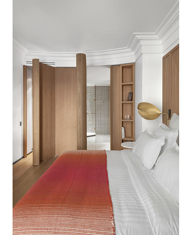 Образец модной эклектики создал в Париже Антуан Симонан, Studio Asai. У окна в спальне — ширма Kin из бумаги васи, Garnier & Linker.