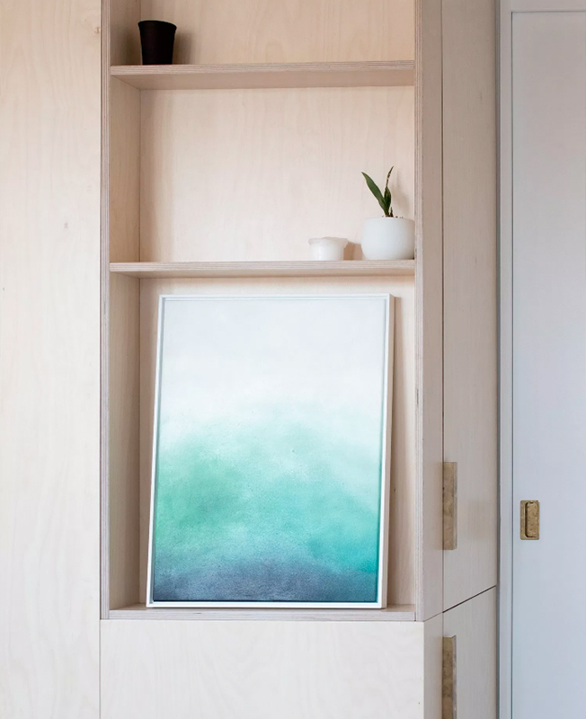 Квартира в Париже — проект французского дизайнера и декоратора Франсуа Шампсора. Раздвижные двери шкафа выполнены из стекла и расписаны художниками Reeze Studio: синяя абстракция выглядит, как морской пейзаж.