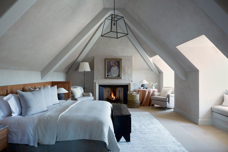 Шесть из 44 комнат — с выраженной индивидуальностью: каждая с уникальным дизайном и цветовой палитрой, разработанной в соответствии с положением комнаты в доме и видом из окна. Самый просторный люкс Long Room расположен в мансарде, под наклонной крышей из массивных дубовых балок. С балкона открывается живописный вид на озеро. «Мы хотели подчеркнуть естественный осенний характер номера из-за этого вида на деревья и папоротники», — объясняет дизайнер.