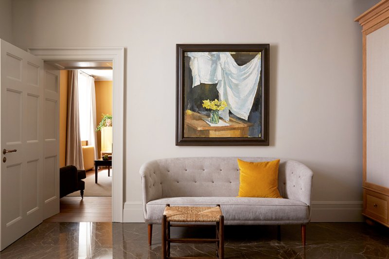 «Было весело играть со слоем восстановленной исторической ткани здания, — говорит дизайнер. — Например, спальни на верхних этажах, которые раньше были комнатами для прислуги, имеют несколько более сложную архитектурную эстетику и обставлены более скромным, наивным антиквариатом. Мы использовали современные объекты, чтобы обозначить свое вмешательство внутри здания, вместо того, чтобы симулировать традиционную уместность».
