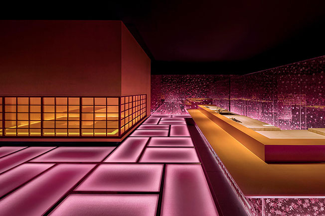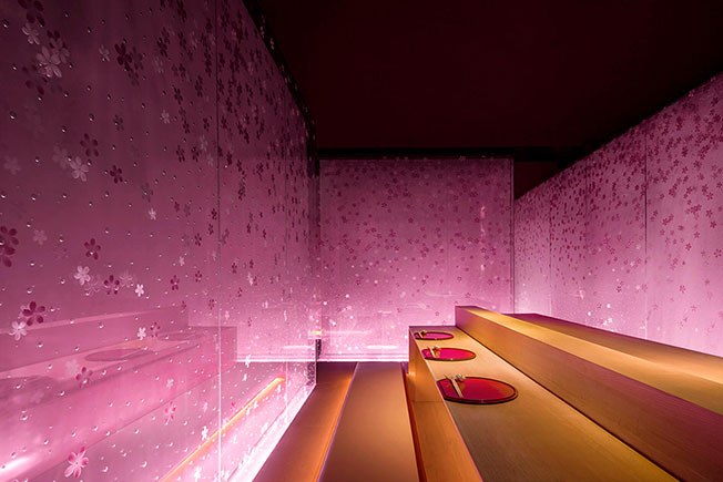 Стиль Omakase — это, по сути, «все, что шеф-повар решил предложить сегодня». Обстановка в этом новом ресторане площадью 160 кв. метров увлекает гостей в странное путешествие по японскому фестивалю сакуры и всем его романтическим историям, а также по компьютерным играм, на которые он вдохновил.