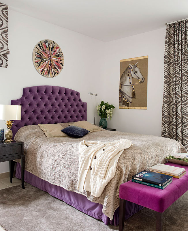 Главная спальня. Кровать, La Ebanisteria. ПРикроватные тумбочки и банкетка, Hamilton Conte. Картина, Hector Deco.