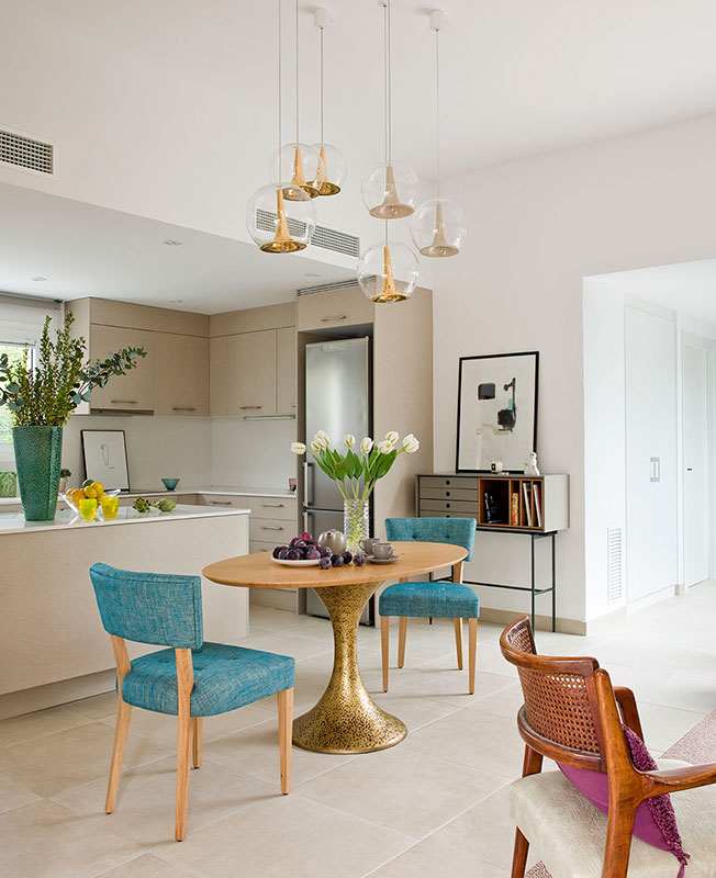Компактная обеденная зона. Обеденный стол и стулья, Hamilton Conte. Потолочный светильник и декор, Bosa.