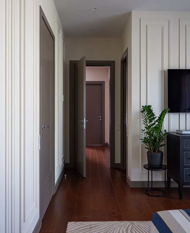 Дизайнер Алексей Стрелюк оформил квартиру 150 кв. метров в ЖК «Парк Рублево», Мякинино. Пространство создавалось для девушки, которая много путешествует. Во время многочисленных поездок по всему миру и жизни в разнообразных отелях у владелицы сложился накопительный образ будущего интерьера с набором определенных требований по функционалу и комфорту.