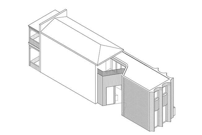 Дом демонстрирует идеальное сочетания исторического силуэта и современного содержания — фасад из кирпича напоминает викторианский замок благодаря сложной геометрической форме.
