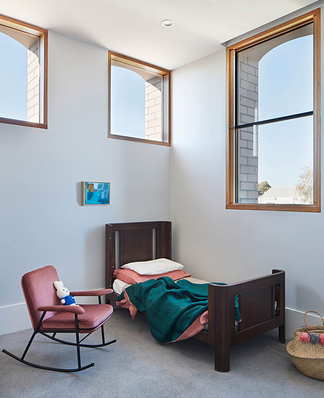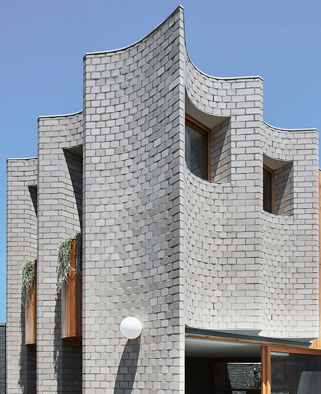 Австралийская студия Wowowa Architecture реконструировала викторианский дом в Мельбурне. Кирпичный фасад здания с зубчатой контуром получил современную пристройку из дерева и стекла. Дом демонстрирует идеальное сочетания исторического силуэта и современного содержания — фасад из кирпича напоминает викторианский замок благодаря сложной геометрической форме. Моник Вудворд, директор Wowowa Architecture, говорит, что их бюро находит вдохновение в самых нетривиальных вещах, например, в панцыре креветки или в листе боярышника. Построенный из бледных серебристо-коричневых кирпичей, двухэтажный монолит поднимается над землей и представляет собой экструдированное зубчатое строение. Скульптурная форма здания дополнена деревянными балконами и стеклянным входом. Похожая на водоросли драпирующая зелень свешивается с балконов. Задний двор довольно компактен, поэтому фасад виден с близкого расстояния, а объем возвышается над ним. Фасад — это скорее жест для публики. Внутренне, дом раскрывается медленнее. Владельцы описали свое будущее жэилье как дом-путешествие и дом открытий. Треугольный двор с изогнутым стеклянным углом рассекает пространство, разделяя кухню и жилые помещения и направляя свет в глубину дома. Кирпичная кладка обнажена. Панорамные окна встроены в разные части дома — стеклянный цилиндр вписан в кухню, а метровые окна приподняты к потолку в гостиной, чтобы впускать больше дневного света.